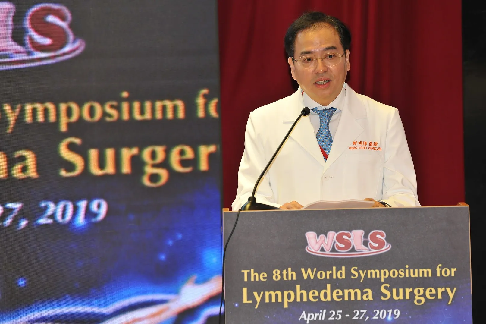 世界淋巴水腫外科手術研討會(WSLS)建立了一個平台,透過此領域世界知名專家的努力,介紹淋巴水腫的發展和治療方面的最新發展和未來方向。自2011年以來,WSLS在領導淋巴水腫手術的基礎研究和臨床實踐方面一直扮演著關鍵作用。 在第八屆世界淋巴水腫手術研討會上,示範七台現場示範手術。顯微淋巴結皮瓣移植的供體部位:下頜部,鎖骨上,腹股溝和腹網膜。受體部位包括上肢的手腕和腋下;下肢的膝膕窩、腹股溝及足踝。我示範的是以顯微下頜部淋巴結皮瓣移植手術。研討會後將進行為期兩天的淋巴水腫主題演講。