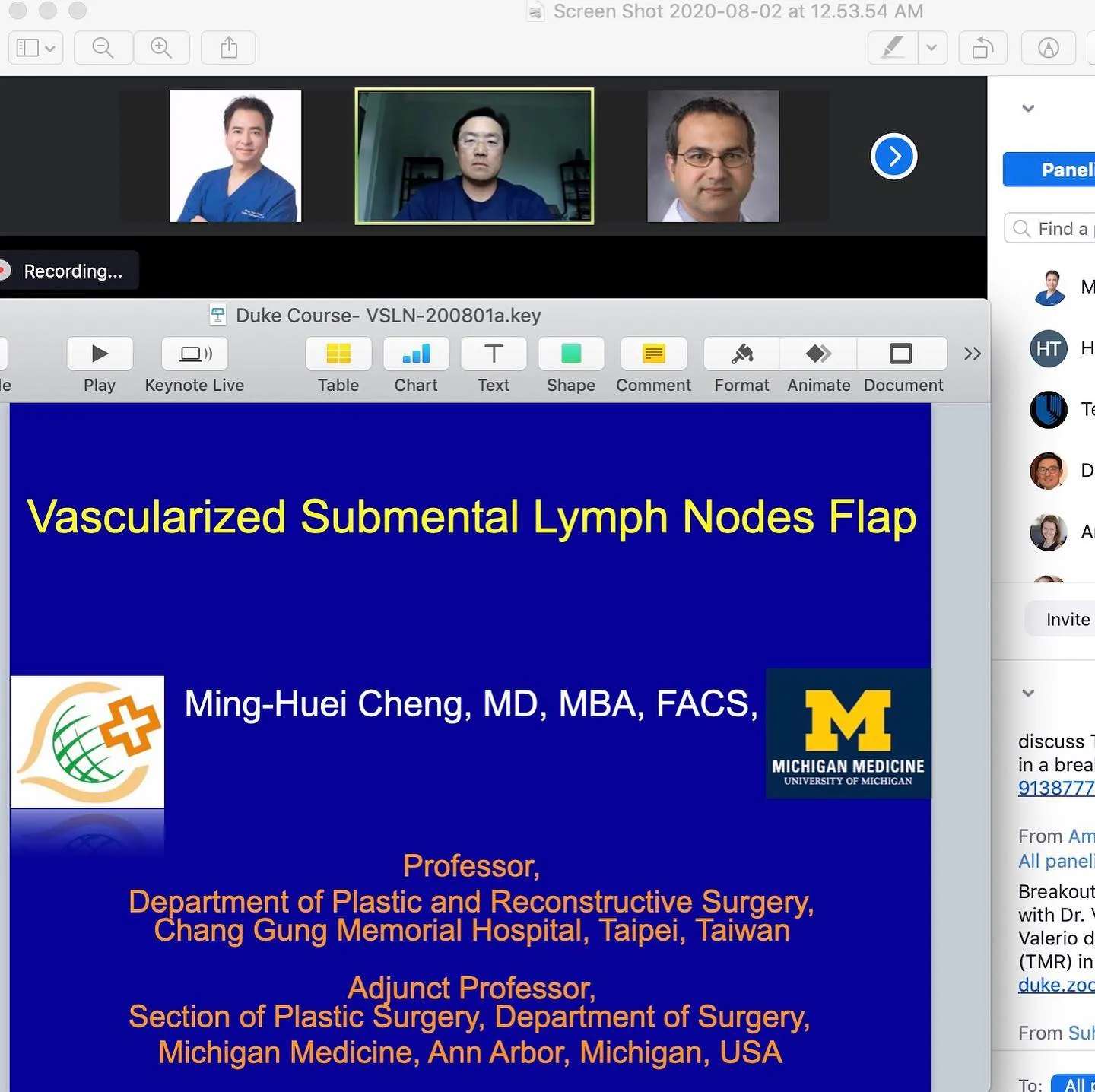 很榮幸能參加2020年線上杜克皮瓣課程,與許多傑出的顯微外科專家一起參加著名的培訓計劃。 我所講授的題目是“顯微淋巴結皮瓣的應用”,特別開心與David Song醫師一同討論顯微淋巴結皮瓣在淋巴水腫病患的應用。 感謝Scott Hollenbeck醫師和Detlev Erdmann醫師以及杜克大學醫學中心的所有人員,這次線上杜克皮瓣課程舉辦的很成功!能與淋巴水腫專家們交流與分享,是很棒的經驗。